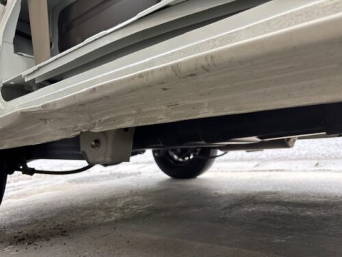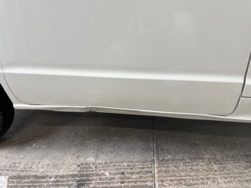 縁石に乗り上げた損傷、 保険対応でスライドドア、ロッカーパネル交換です