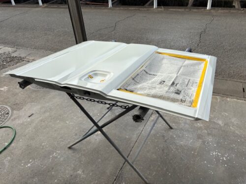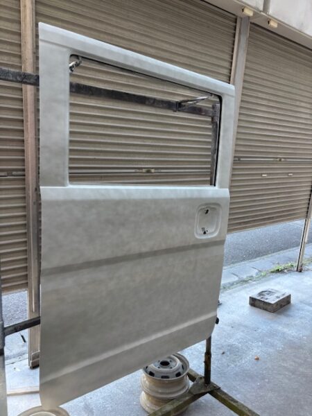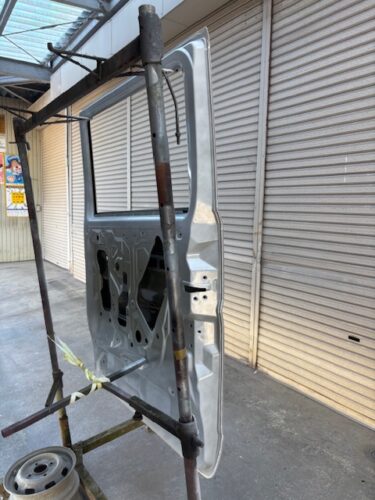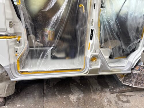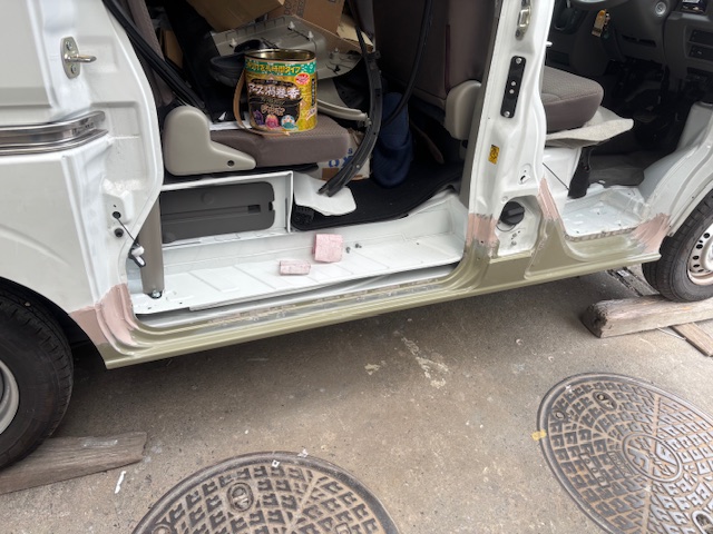 在庫品をあらかじめ調色しておき、塗装しますその後ロッカーパネル交換、明日ロッカーパネル塗装、スライド磨き組み付け仕上げ、計2日の予定です