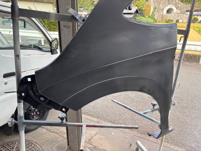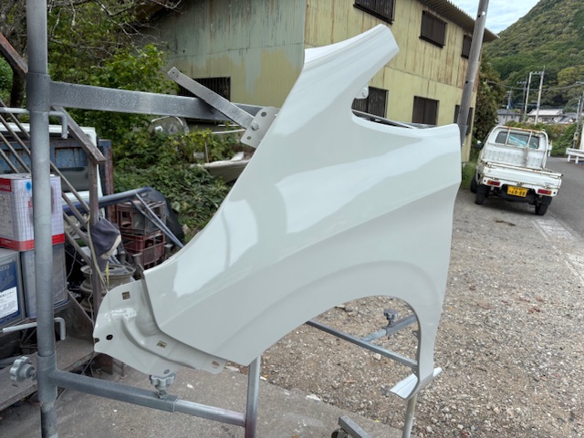 交換のみで作業はシンプル、パネルの足付け作業と調色です、カラーNO,883Pは何車種かに使われてますが厳密には皆違う為都度確認し調色します
