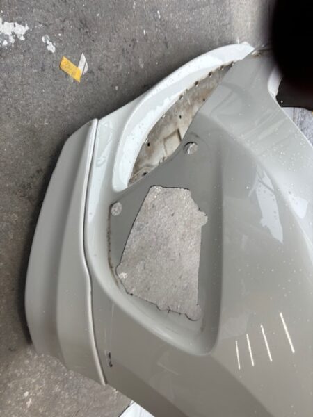 現車はオプション品のフォグランプが装備されている為画像のように穴開け加工が必要です、保険の場合有料作業となります