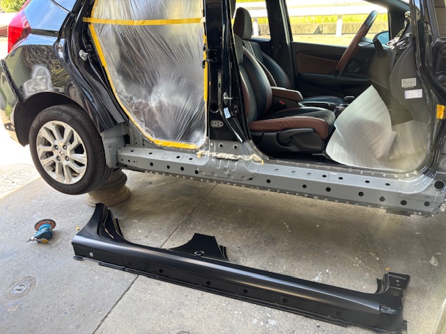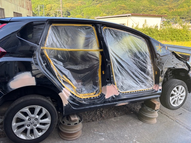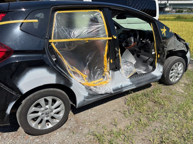 GP-5 フィットハイブリッド右側面自損事故フロントバンパー・フェンダー・ドア・クォーター修理ロッカーパネル交換