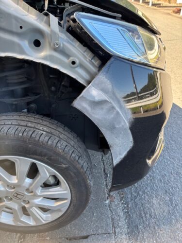 中央分離帯に衝突しての損傷で車両保険での対応、お客様は代車(レンタカー)を楽しみにしていてできるだけ良い車希望とのこと、レンタカー会社に掛け合い今年登録のヴェゼルになりました。皆様もレンタル期間にもよりますが、もしかしたら日額以上の車がレンタル出来るかもしれません。