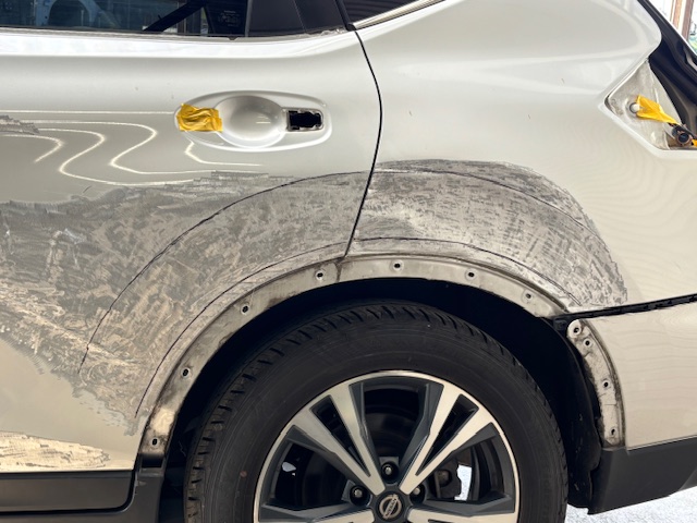 HT32 エクストレイル 左リアドア・クォーターパネル板金 沼津
