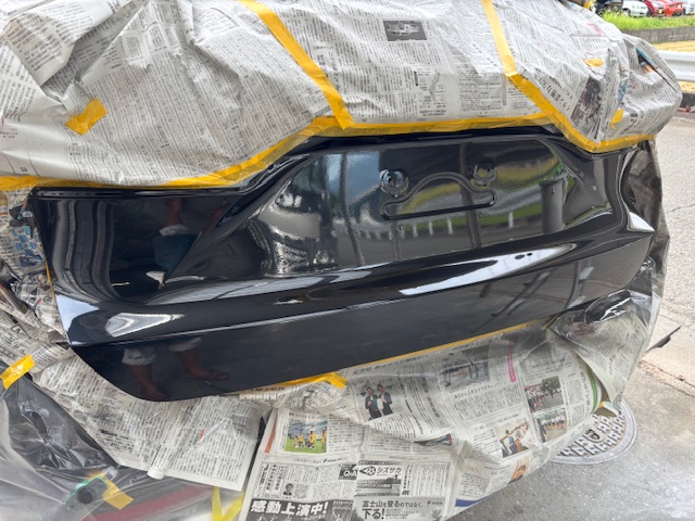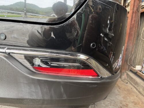 AXUH80ハリアーハイブリッド右リア損傷 リアバンパー交換・バックドア・バックパネル修理 沼津