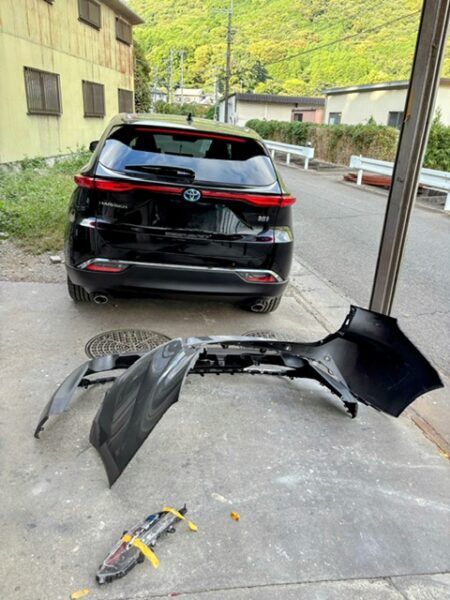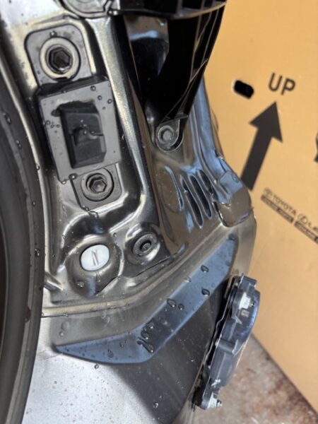 バンパーが畳み込んでいる為奥のボディ側も影響有りと推察できます、保険案件はこういったところも見逃しません